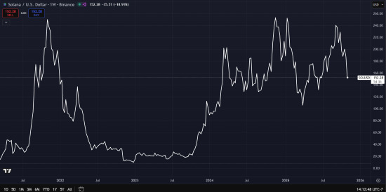 Weekly Solana (SOL) Chart via TradingView